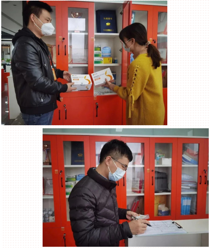 随着疫情防控调整,医院门诊就诊人数增加,药店的抗原和药品货源紧张。为最大限度维护好员工的生命安全和健康,同时安抚员工紧张情绪,近日,欢创集团领导们克服当下药品紧缺、运输缓慢等不利因素,通过多种渠道、多方筹措、多法并举,为全体员工购买了一批防疫物资,包括医用口罩、免洗消毒洗手液、酒精喷雾、抗原检测试剂盒,以及一批成人及儿童药物,包括抗病毒口服液、蓝芩口服液、小柴胡颗粒、感冒灵颗粒、板蓝根颗粒、保济丸、金桑子喉片、藿香正气合剂、双黄连口服液、百服宁、盐酸氨溴索分散、盐酸氟桂利嗪胶囊、维生素C片、小儿氨酚黄那敏颗粒等。